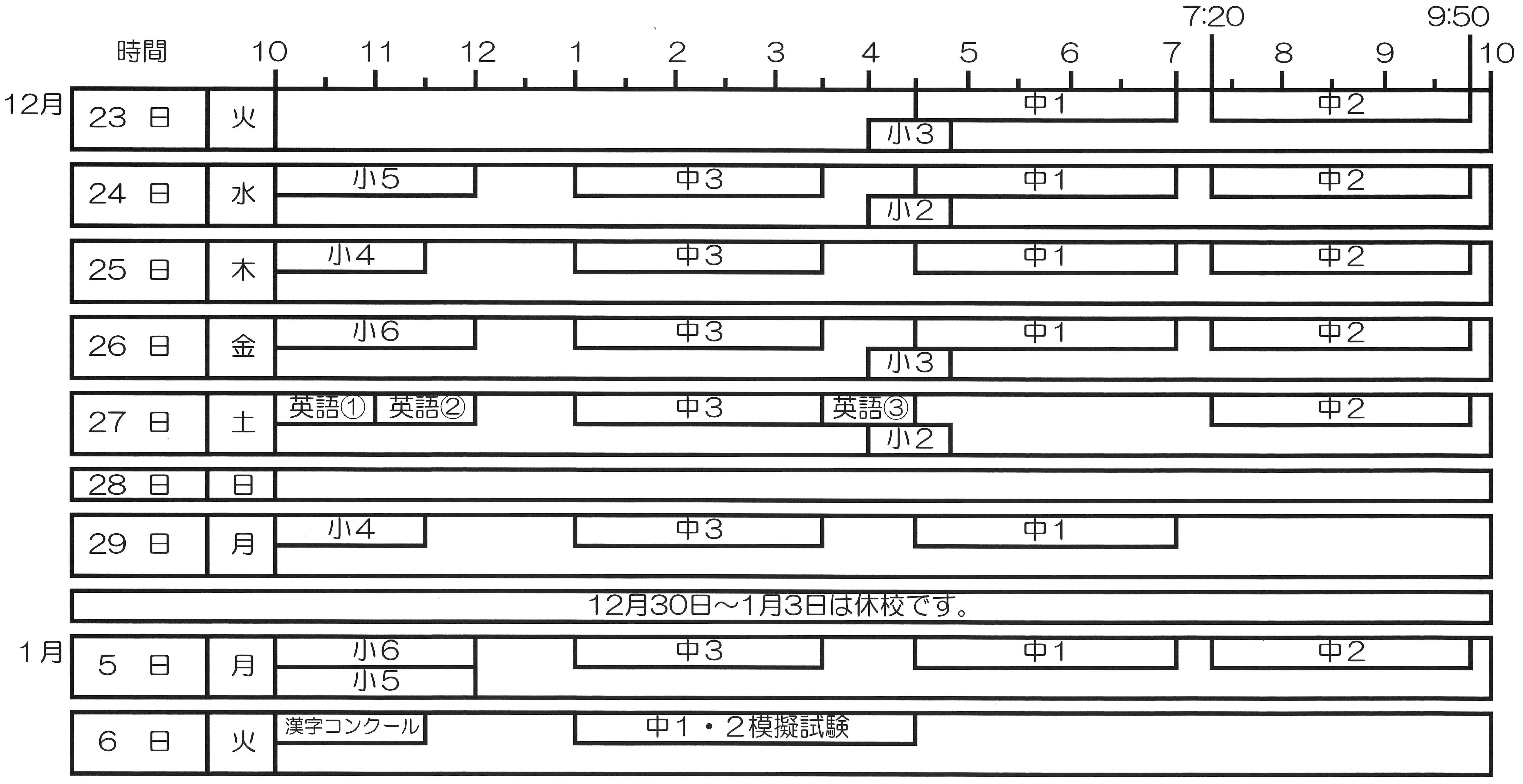 ※期間中の12月30日(火)~1月3日(土)は正月休校となります。